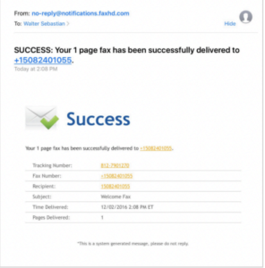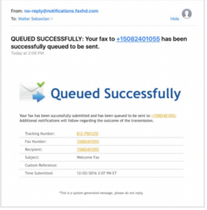 - Please wait. Once the fax is successfully sent, you will receive another email indicating a success.